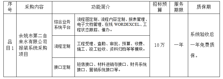 余姚市第二自來水有限公司報裝系統(tǒng)采購項目招標(biāo)公告